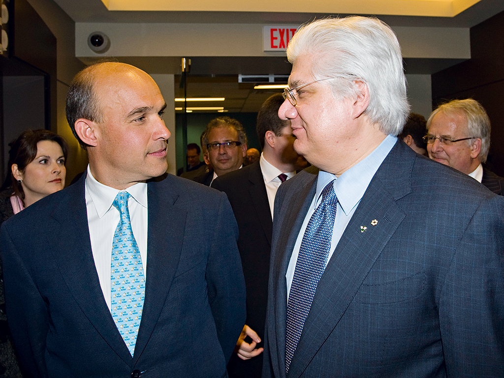 Former joint Research in Motion CEOs Jim Balsillie (l) and Mike Lazaridis (r). They quit together in 2012