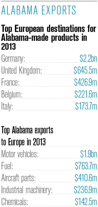 Between 2011 and 2013, companies from Germany, France and the UK invested more than $1.7bn in Alabama projects