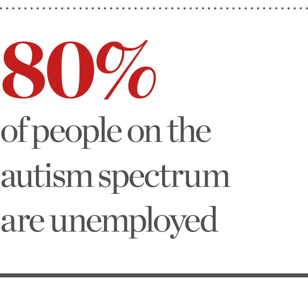 This lack of awareness can have significant consequences. Globally, the unemployment rate for people on the spectrum stands at 80 percent – a staggering statistic when you consider the broadness of the condition, which ranges from people with severe autism, for whom a normal working life may never be possible, to those with far milder conditions such as Asperger syndrome, which was incorporated into the wider autism spectrum in 2013. But despite the huge variation in individuals’ conditions, poor social skills are a common feature. “People with autism may have difficulty with social communication and social interaction,” Leader explained. “They may find it difficult to navigate the complexities of non-verbal and verbal language, and take what people say very literally.”