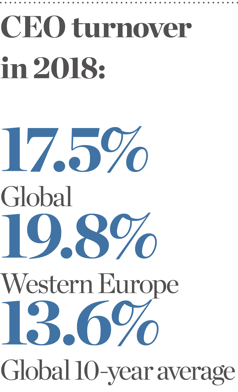 The number of CEOs leaving their posts as part of a succession strategy is rising. Globally, 12 percent of CEO departures were managed through planned succession – the highest proportion of departures to date. The same record was broken in Western Europe, where 11.1 percent of CEO departures were planned. “One of the things we have found over the years is that boards are far more engaged in succession planning,” said Karlsson. “Companies fare much better when there is an orderly succession – it is healthy.”