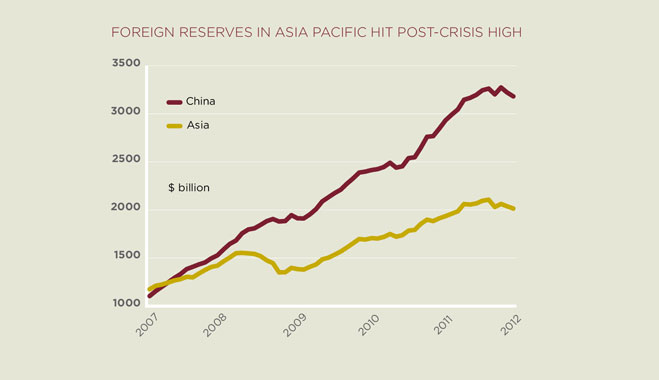 The first inconsistency is the dominance of the US dollar in the international financial sector in an increasingly multi-polar world economy. Second, the euro is the world’s second-largest reserve currency but is, unfortunately, a multiple currency peg system within the eurozone, and structurally incomplete without a fiscal union. Third, China is the world’s second-largest economy and needs to align itself toward more open capital markets and market-determined exchange rates. Fourth, the world’s major reserve currencies – the US dollar, the euro, the British pound and the Japanese yen – are all saddled with wide fiscal deficits and large public debt burdens, not helped by dysfunctional politics that render policymaking ineffective in pushing structural reforms. These G4 currencies have lost or are at risk of losing their triple-A sovereign debt ratings, with their central banks focusing more on managing the size of their balance sheets than conducting monetary policy. In turn, this has serious implications for the post-crisis international financial system that relies on them to establish risk-free benchmark yield curves.