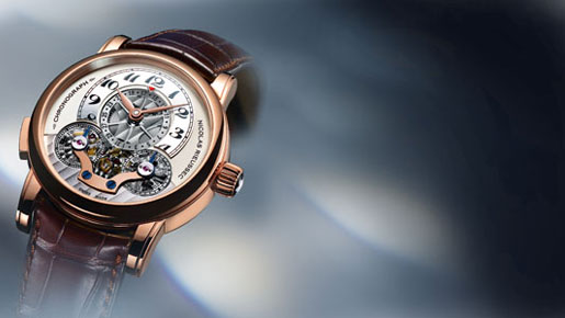 Inspired by the original mechanism developed by Nicolas Rieussec, the Montblanc Nicolas Rieussec chronographs feature two fixed hands and beneath them two rotating discs ñ the second and minute counters. This method of measuring time is unique and ensures that the face of these chronographs differs entirely from that of traditional chronographs. In addition to a classical column wheel and an innovative vertical disc clutch that runs virtually friction free and does not affect the watchís rate they are equipped with twin barrels that store enough energy for the watch to run for 72 hours.
