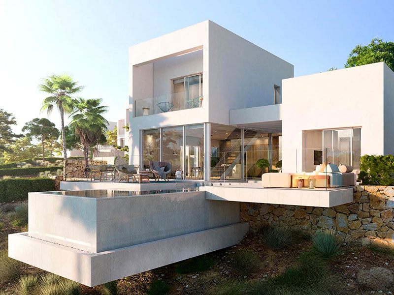 The Madroño villa, which is spread out over three floors and part of Villa Value's property range. It has a sleek design and three-sided infinity pool